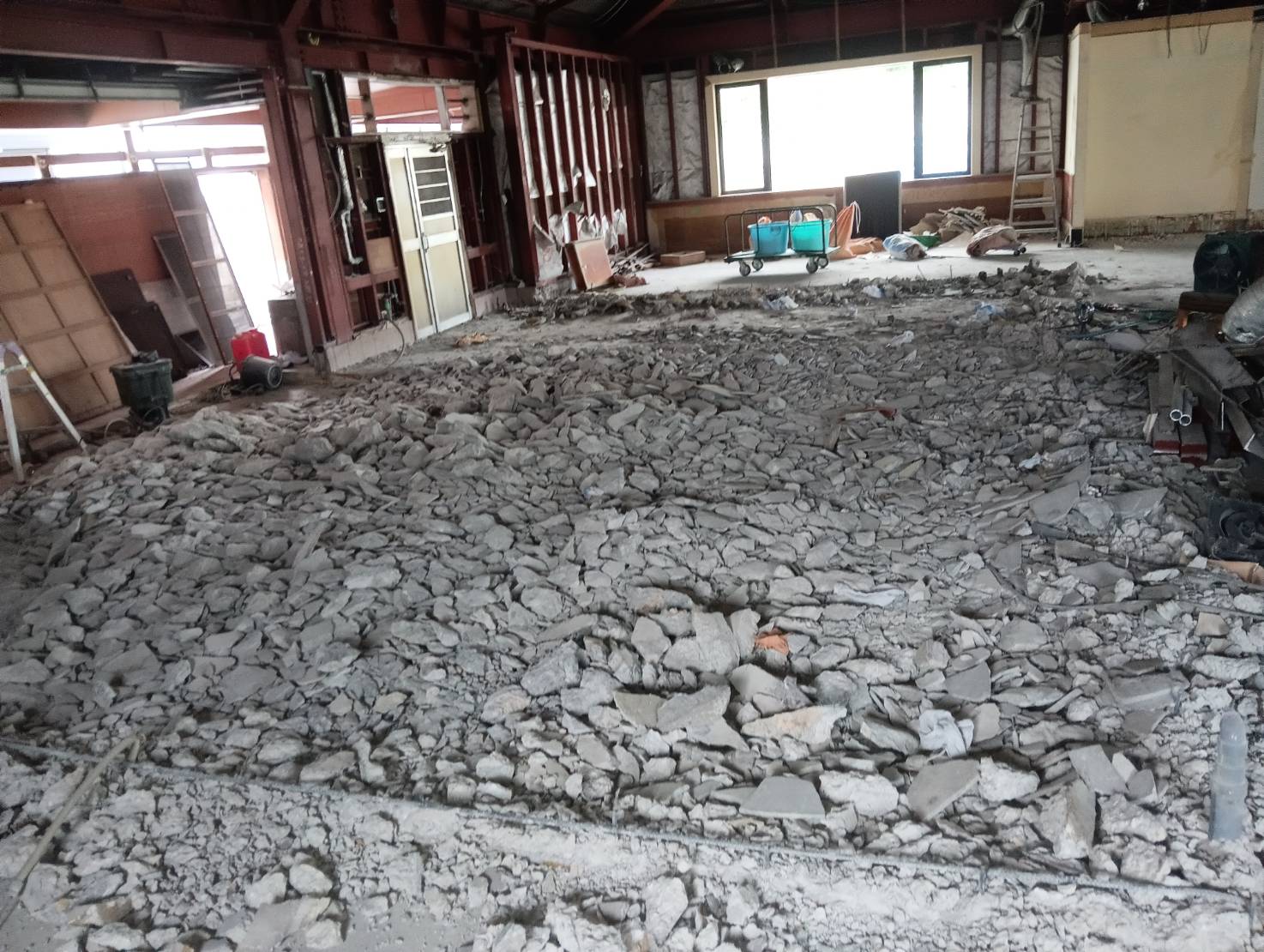 商業施設や店舗の内装解体工事床材・防水材の剥ぎ作業は、お気軽にご相談ください